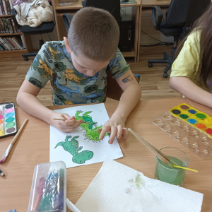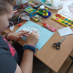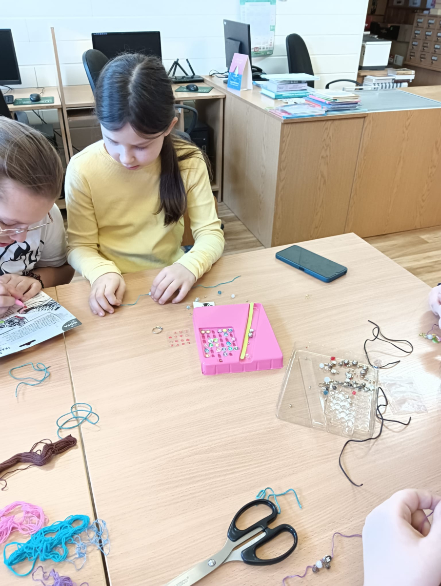 Nie zabrakło też twórczych działań — na zajęciach plastycznych powstały prawdziwe małe dzieła sztuki, a podczas warsztatów robienia biżuterii z gumek i koralików każdy mógł stworzyć coś wyjątkowego dla siebie lub bliskich.