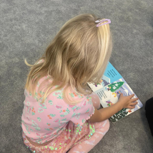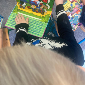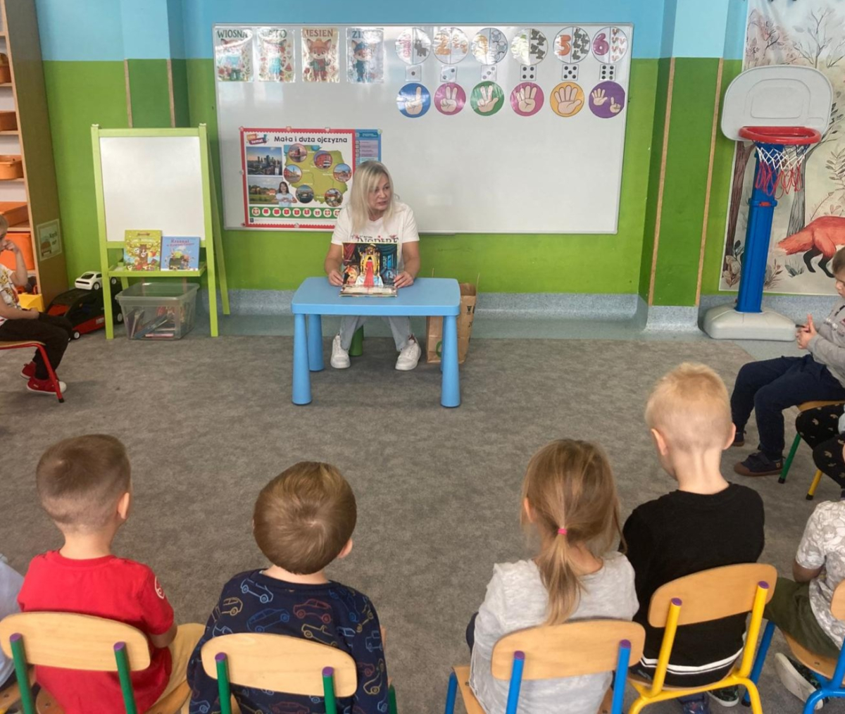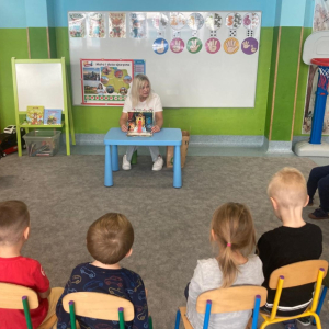 W ramach ogólnopolskiej akcji „Cała Polska Czyta Dzieciom” pani bibliotekarka z Filii w Kochcicach odwiedziła grupę czterolatków.