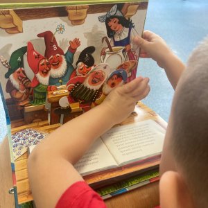 Podczas spotkania dzieci wysłuchały bajki pt. „Królewna Śnieżka”, a następnie miały okazję obejrzeć książeczki przyniesione z biblioteki.
